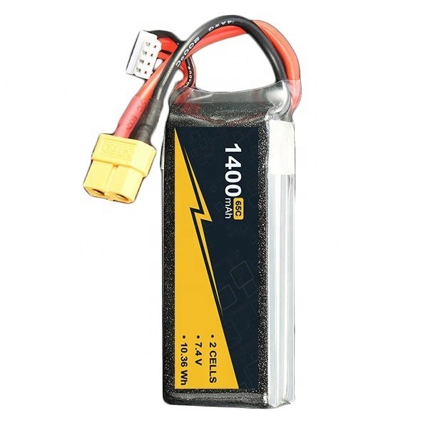 باتری لیپوتری فوق سبک 1400mah 2S 7.4V 1400mAh 65C برای FPV Dones مسابقه Quads Rc اسباب بازی های هلیکوپتر ماشین